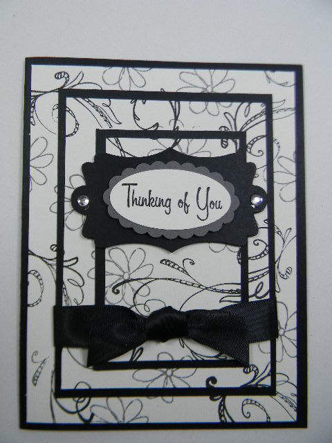 My "thinking of you" sentiment was added to a Gray scallop oval piece and then framed on a Black Nestability Label. I simply love how this Triple Stamping Technique generates the most PERFECT card each and every time I use it.
