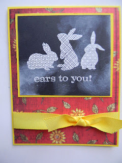 I love this stamp set so much......but love even more that Pam used the new Chalk Board technique to create this card. How stinkin' cute do these three bunnies look done-up on chalk board?