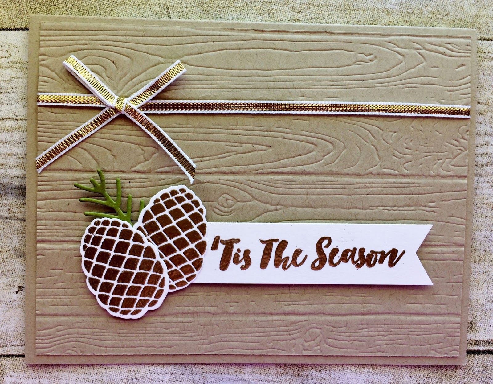 Then I created these BEAUTIFUL over the top pine cones with the 'Christmas Pines' set and more Gold Embossing Powder.
