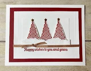 After I had that panel all embossed ….. I used the 'Tree Angle' set and stamped my sentiment at the bottom.  I used Cherry Cobbler ink to stamp that sentiment.